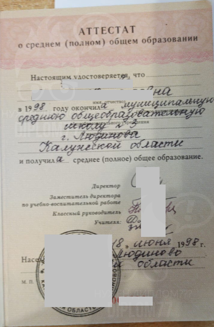 Ответ: Здравствуйте. Можем сделать. От вас нужно фото титула аттестата (корочки). Отправить информацию можно на WhatsApp +79052590480 или е-мейл zakaz@diplom77.com . Стоить будет 15 000 рублей. Делается за 3-4 дня и плюс время доставки. Подробнее о вариантах оплаты и доставки здесь: https://diplom77k.cfd/dostavka