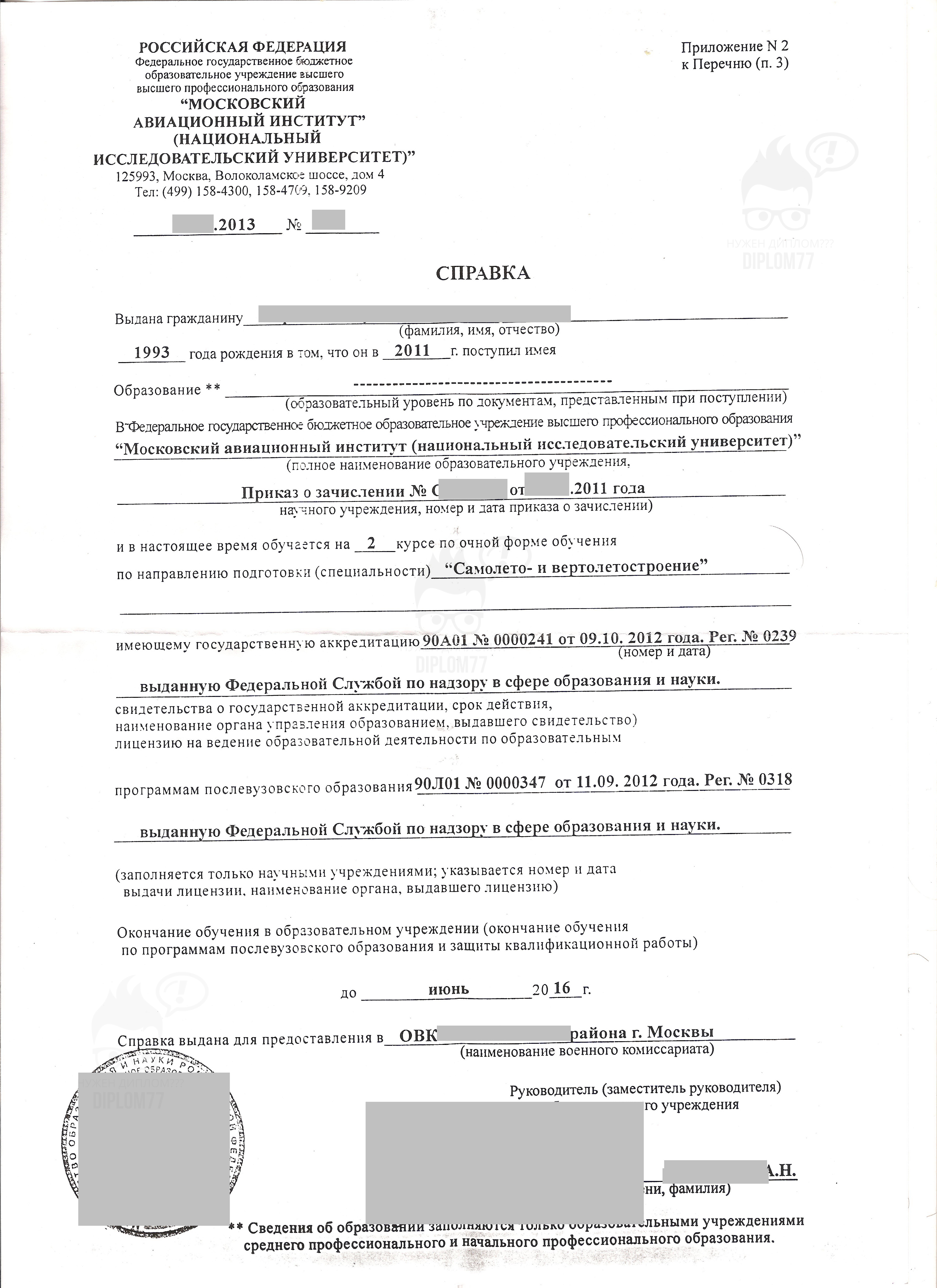 Купить любую справку на «Диплом77»