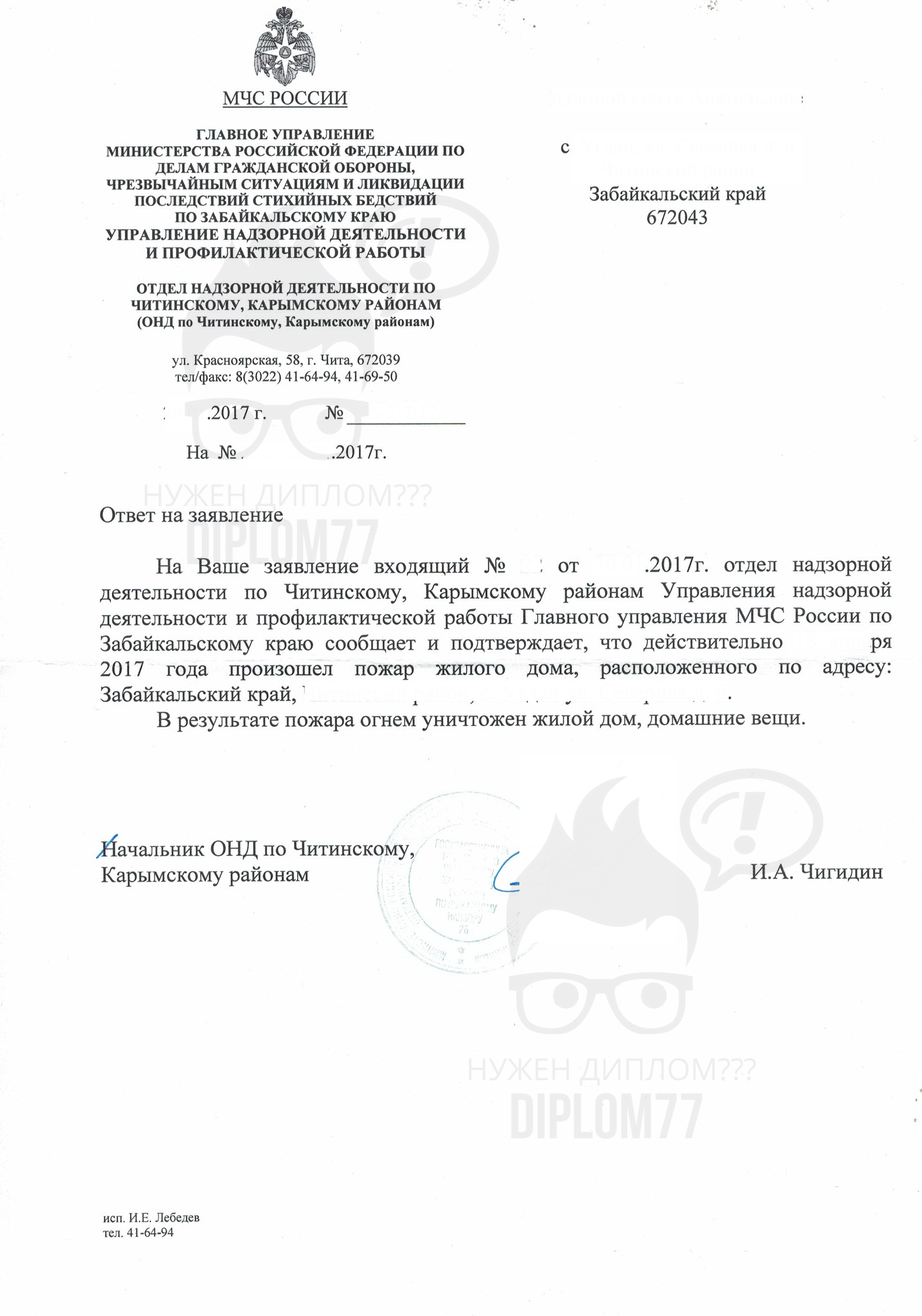 Справка из архива МЧС о пожаре 2024 года
