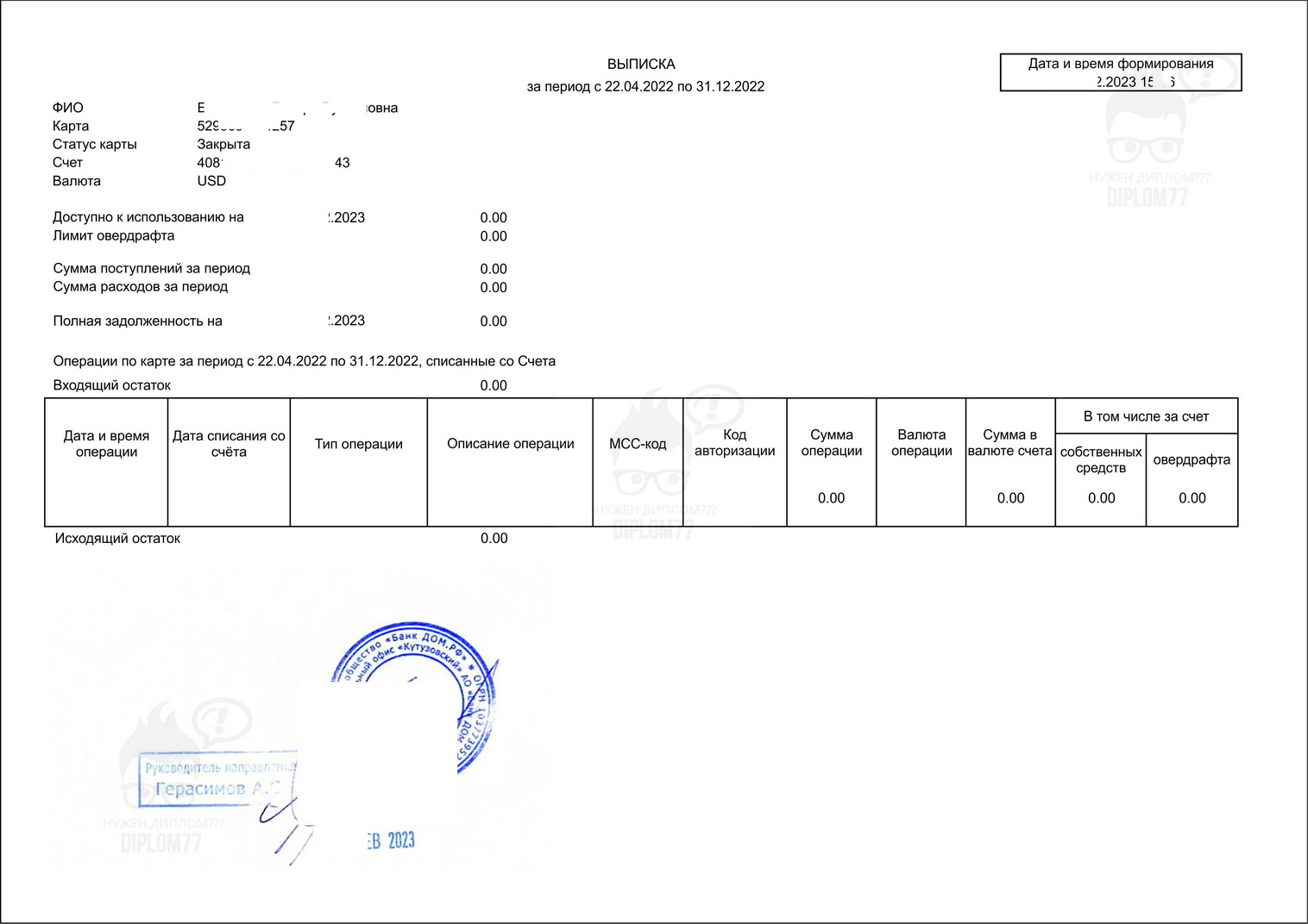 Ответ: Можем сделать. Справка из банка стоит 10 000 рублей. Делается за 1-2 рабочих дня и плюс время доставки. Отправить информацию можно на WhatsApp +79052590480 или е-мейл zakaz@diplom77.com (лучше выслать образец). Подробнее о вариантах оплаты и доставки здесь: https://diplom77k.cfd/dostavka