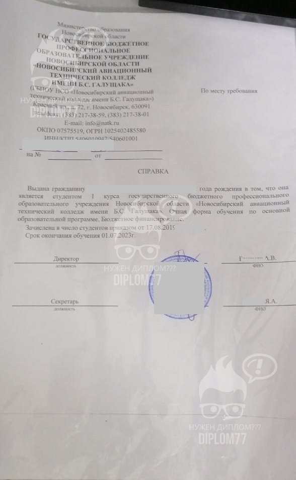 Тут еще проще, чтобы купить справку с места учёбы в колледже — заполняете заявку на Диплом77 и мы связываемся с вами по телефону и отдаём заказ в работу. Через день-два получаете ваш документ.