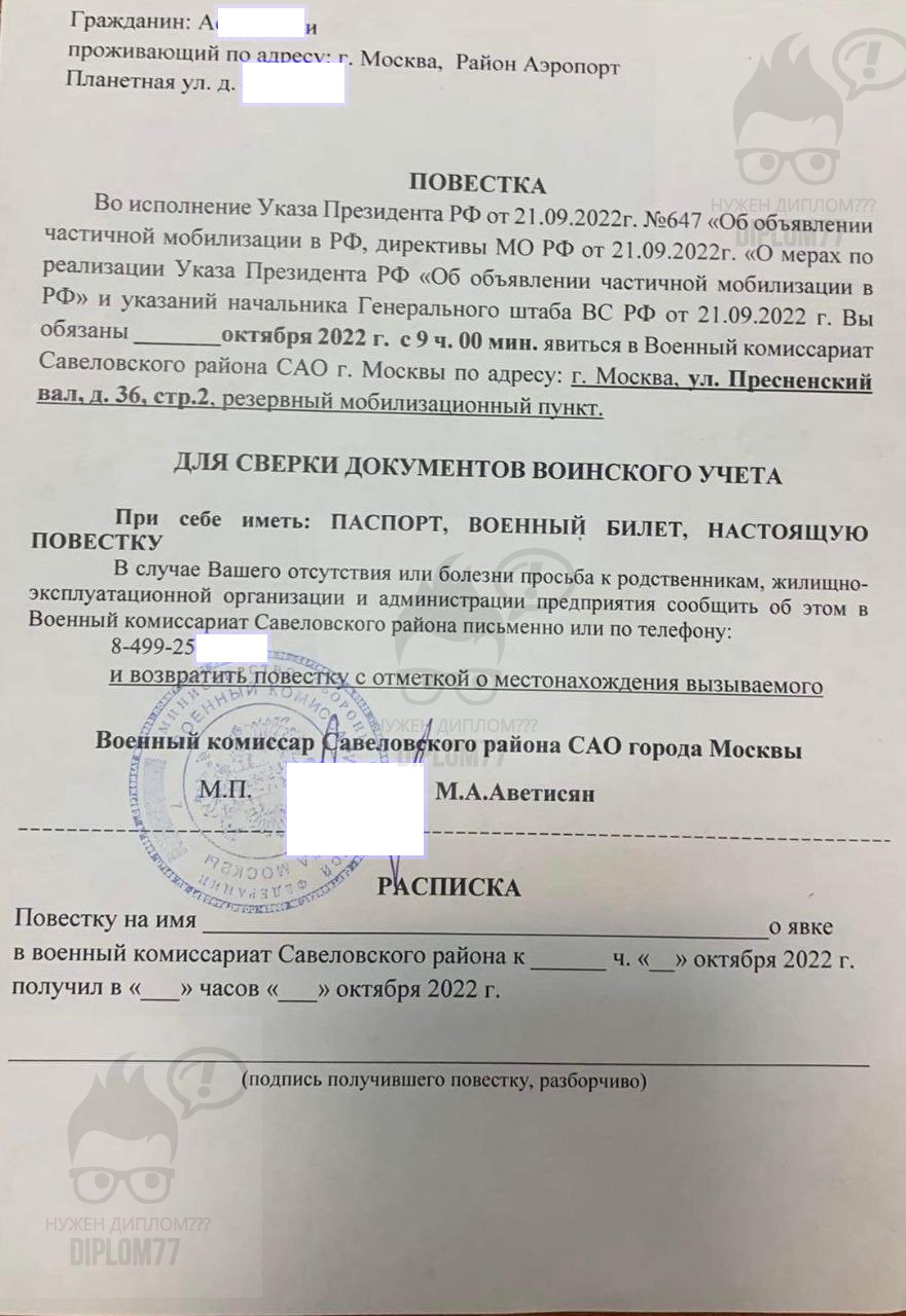 Вопрос: Повестка на мобилизацию